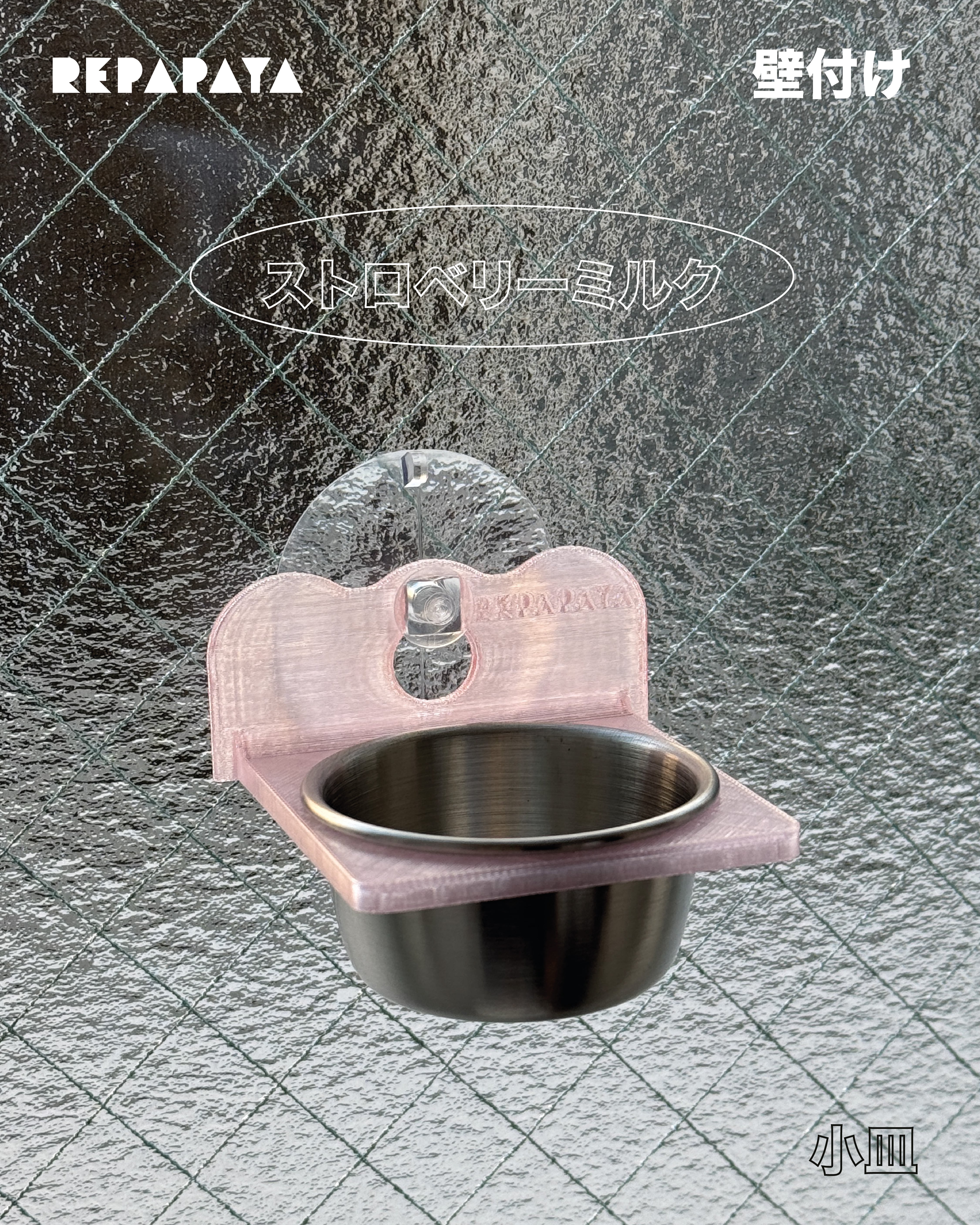 壁面に設置することで、樹上性の小動物の生活習性により適した給水・給餌環境をつくることができます。小皿ホルダー部分には、Repapayaらしい半透明のPETG素材を使用。しっかり固定でき、お手入れもしやすく、やわらかく可愛らしいカラーリングが特徴です。