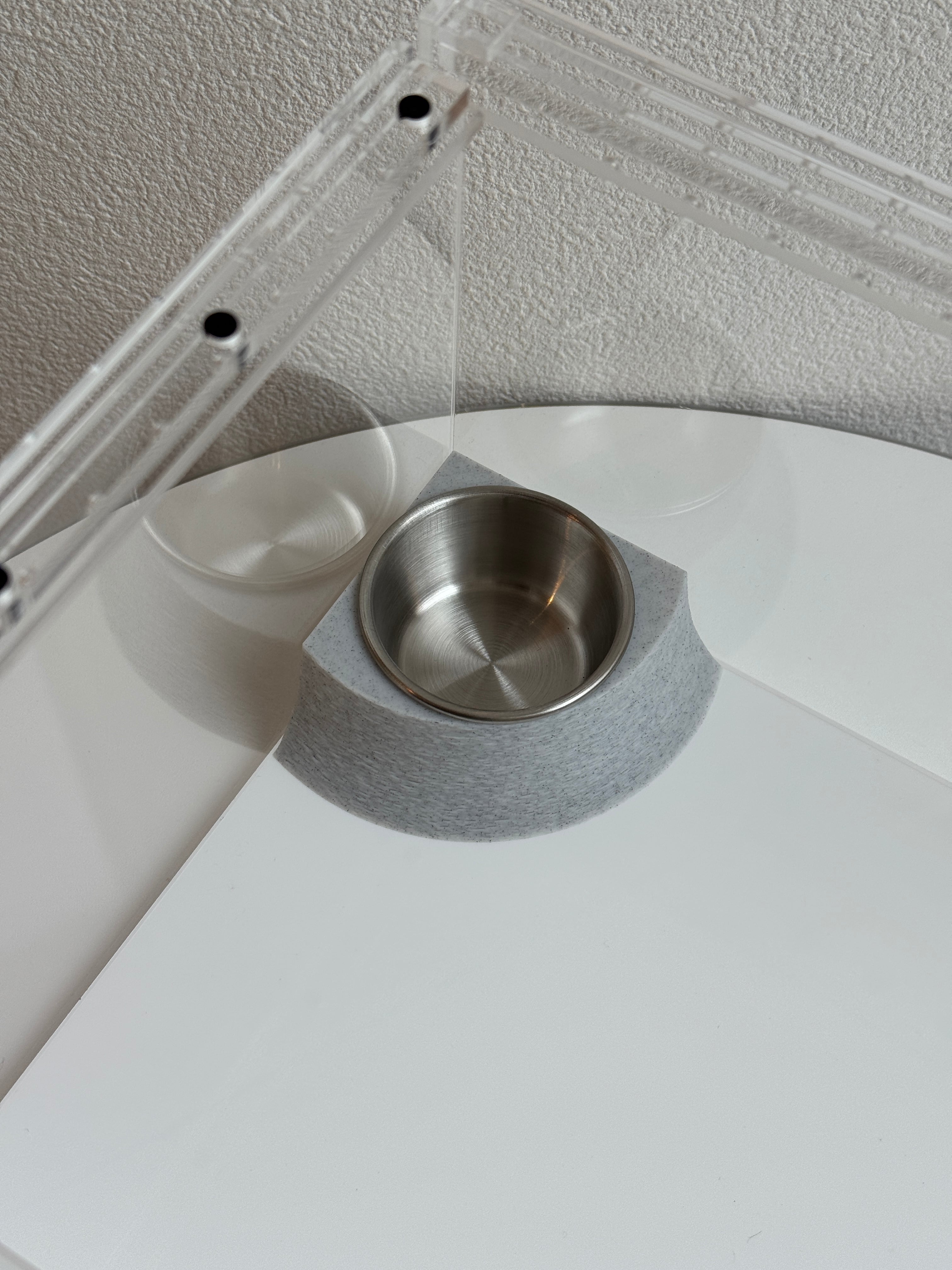 『マイ森』シリーズのlogシェルターとおそろいカラーで展開する、ケージの角にぴったりフィットする省スペース設計の餌・水用小皿です。全6色展開。カップ部分にはステンレスカップを採用しており、汚れが付着しにくく、におい移りも少ないため、飲水を清潔な状態で保ちやすく衛生的です。カップは取り外し可能で、お手入れも簡単です。