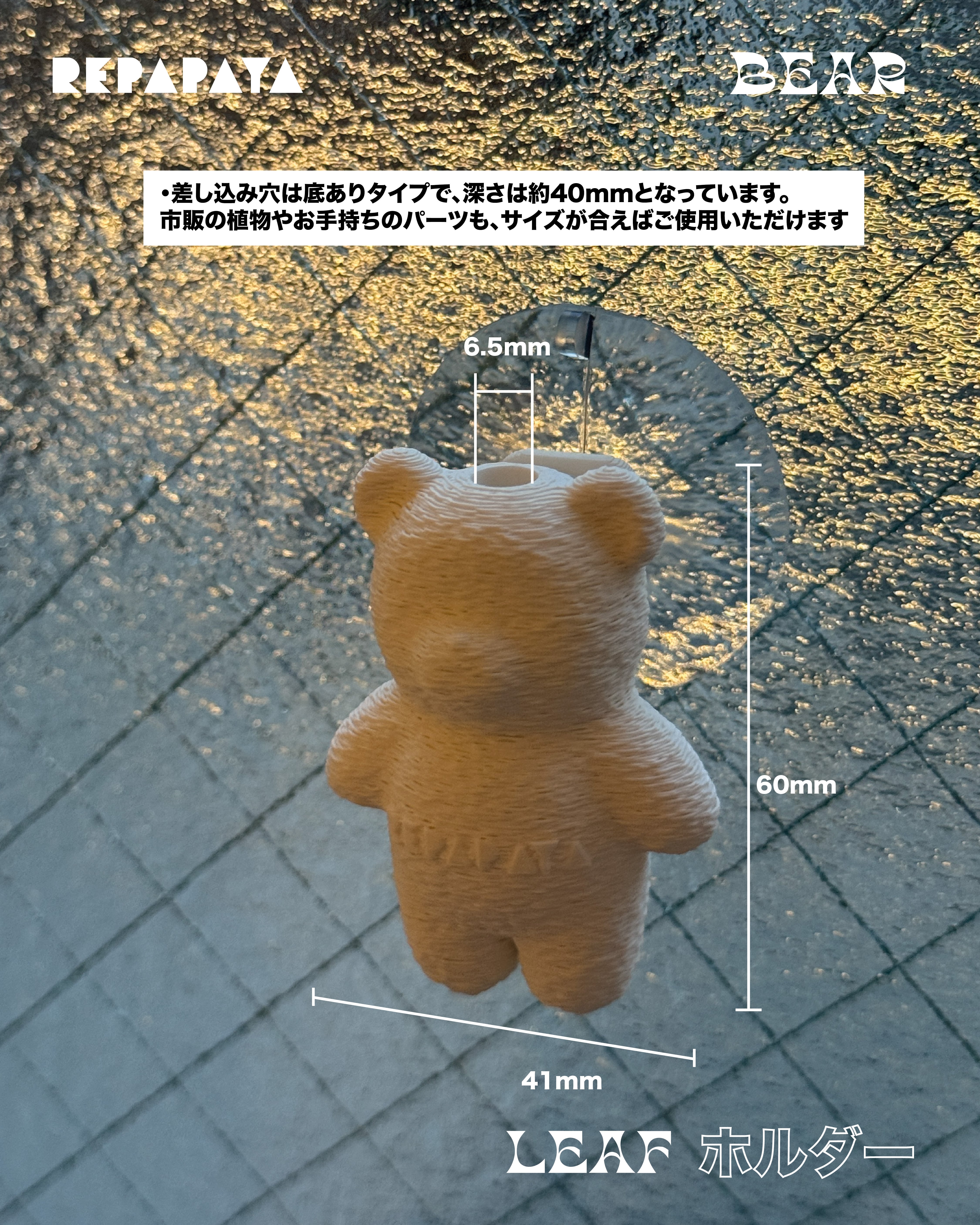 小さくて可愛い、クマのかたちのLEAFホルダー。コンパクトながら、約500gの強力吸盤でしっかり固定できます。ケージ内にさりげない遊び心と立体感をプラスできるアイテムです。