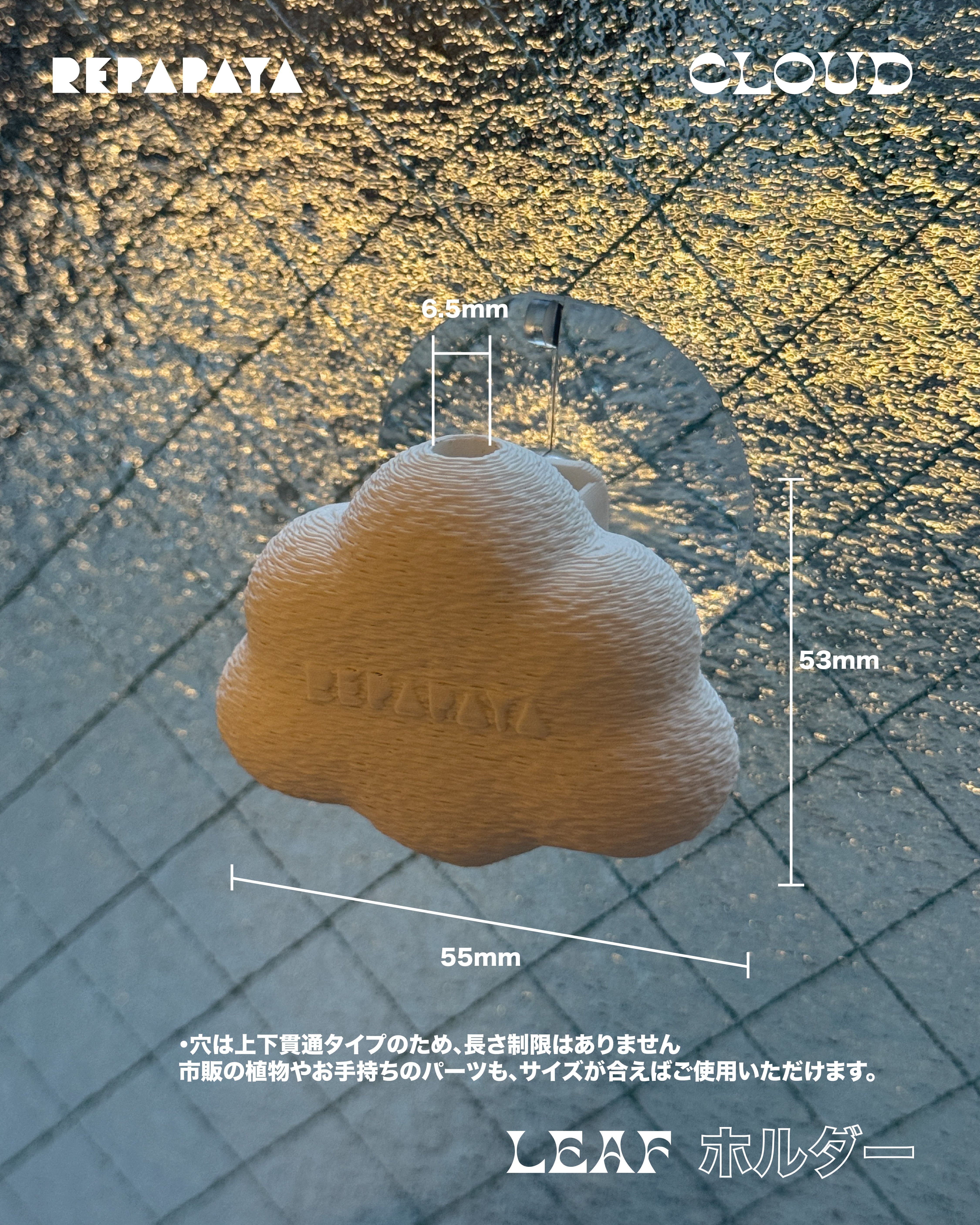 市販の植物やお手持ちのパーツも、サイズが合えばご使用いただけます。サイズは手作業での測定のため、多少の誤差が生じる場合があります。あらかじめご了承ください。