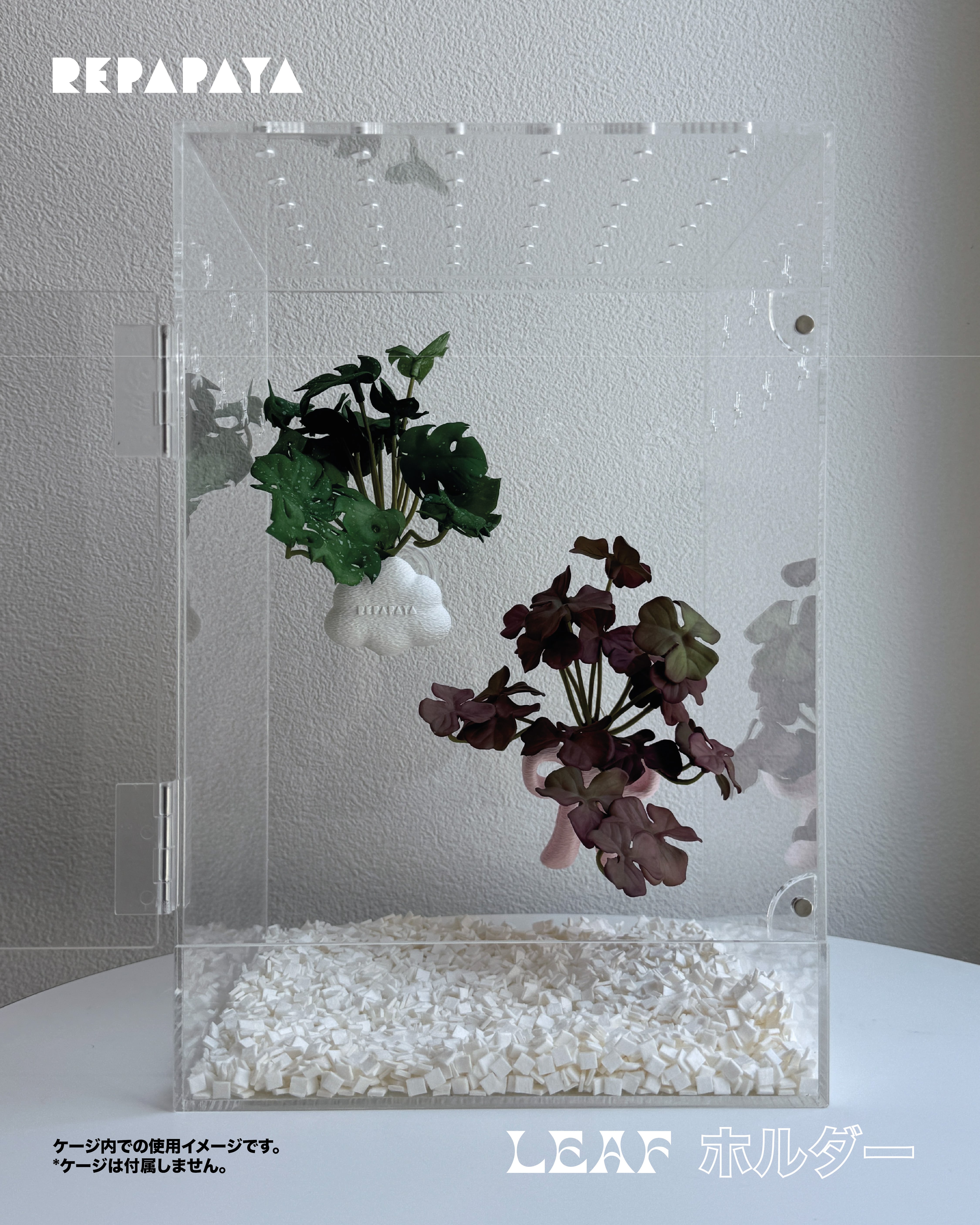 小さくて可愛い、雲のかたちのLEAFホルダー。コンパクトながら、約500gの強力吸盤でしっかり固定できます。ケージ内にさりげない遊び心と立体感をプラスできるアイテムです。
